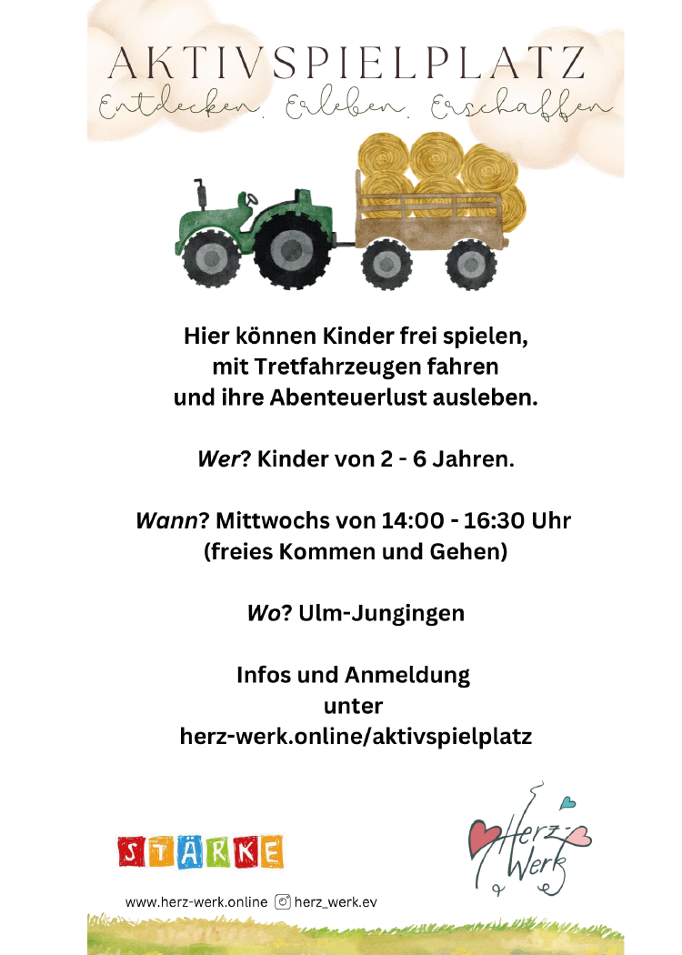 Wir treffen uns immer zwischen 14:00 Uhr und 16:30 Uhr. Du kannst in diesem Zeitfenster Kommen und Gehen, wie es für dein Kind passt. Eine Ameldung ist erforderlich!